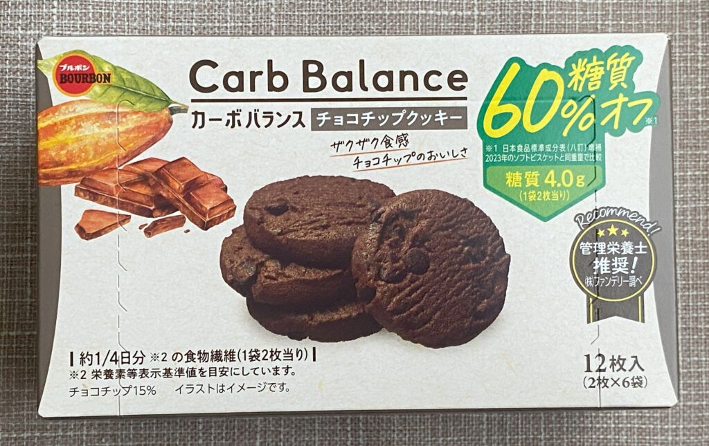 ブルボン「カーボバランス〈チョコチップクッキー〉」は、糖質オフながらしっかりとしたチョコの風味とサクふわ食感が楽しめる、ダイエット中のおやつにぴったりの商品でした。