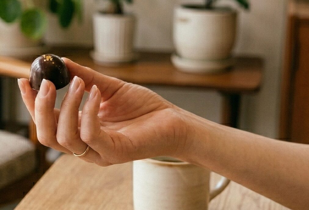それに対して、カカオバターの質が高く素材本来の力を引き出したチョコレートは、食べた後の余韻が長く続きます。一口食べた後、10分経っても20分経っても、口の中に心地よい香りが残っているのを感じたことはありませんか? この長く続く余韻こそが、満足感の正体です。質の高いものは一粒で私たちの心を満たしてくれて、それ以上の食べ過ぎを自然と防いでくれます。