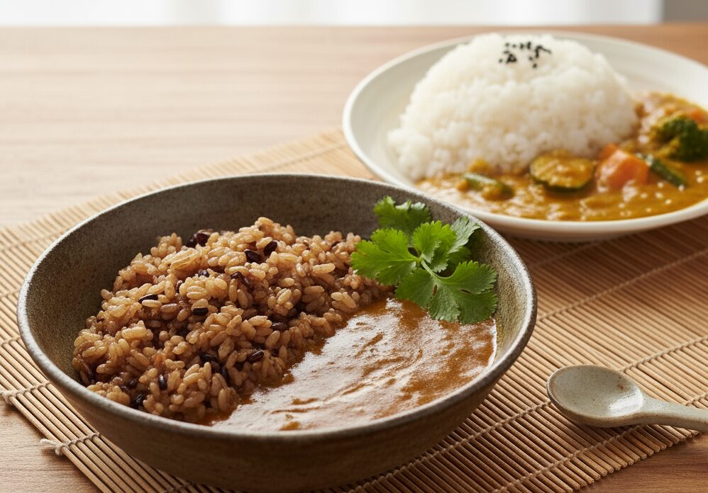 「玄米ごはん=和食の脇役」と思われがちですが、実はカレーの“旨味とスパイス”をぐっと引き立ててくれる名脇役なんです。
