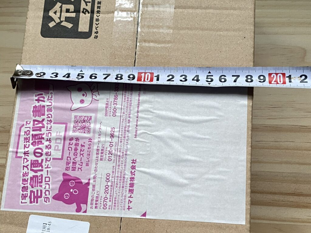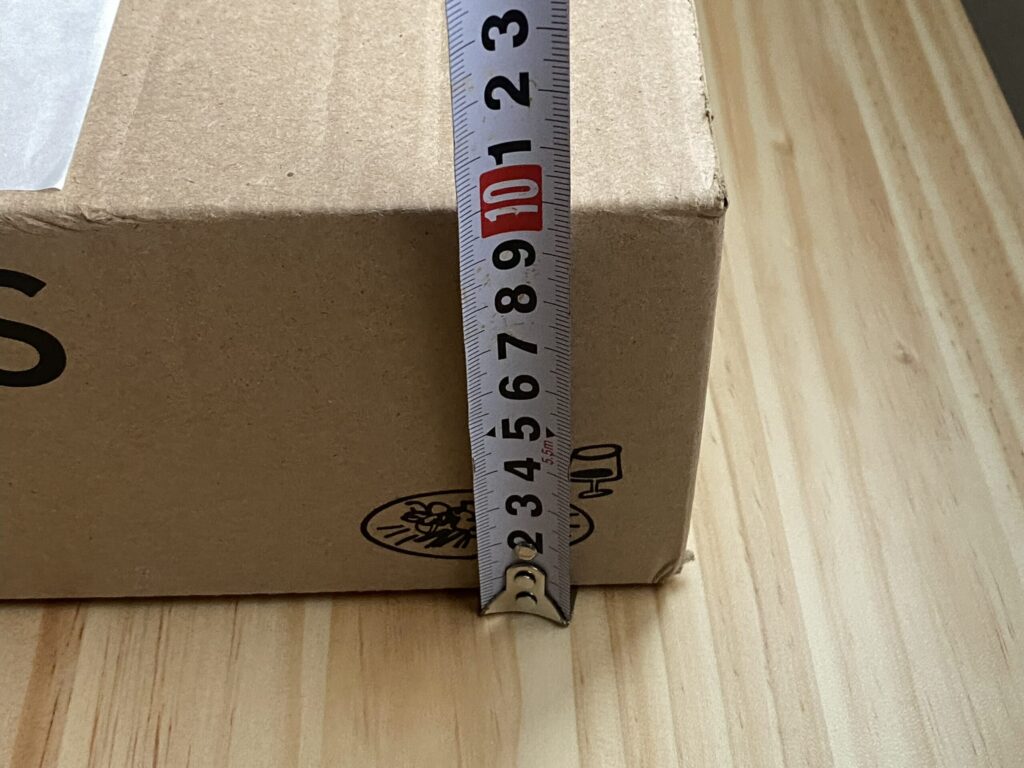 受け取った段ボールはかなりコンパクトで、サイズはおよそ縦18cm × 横29cm × 高さ10cmほどでした。