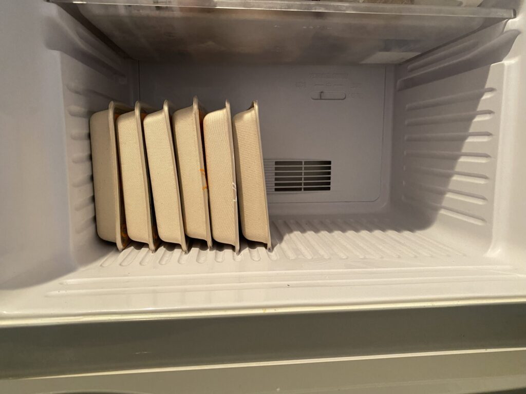 コンパクトな冷凍庫でも6食まとめて無理なく入ります。