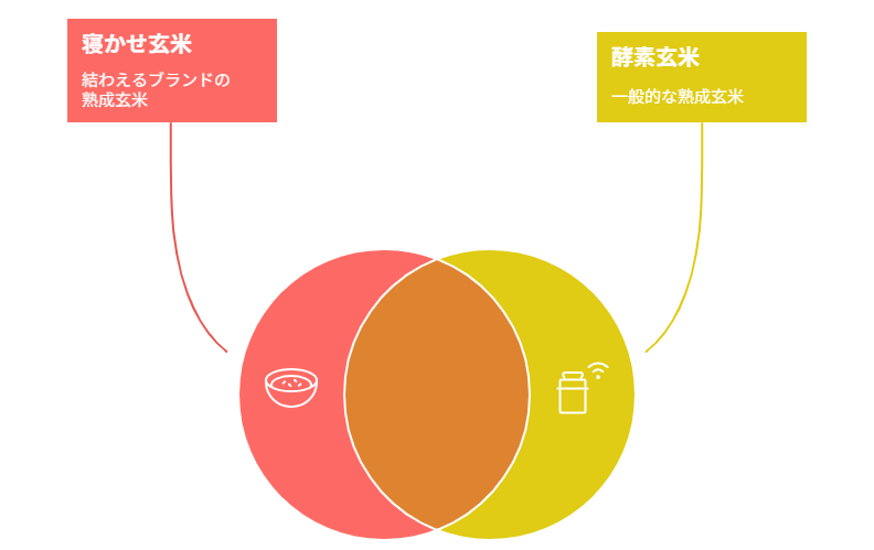 ネット上では、「寝かせ玄米=酵素玄米」や「どちらも同じものを指している」と説明されることもありますが、厳密には「寝かせ玄米」はブランド製法、「酵素玄米」は一般名称と整理できます。