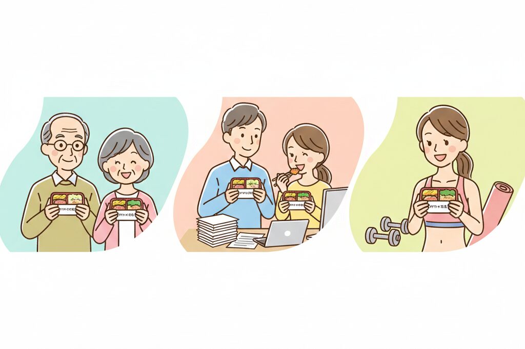 毎日、栄養バランスの整った出来立てのお弁当が届くため、火を使ったり、献立を考えたりする負担が一切なくなります。特に、カロリーや塩分管理に気を遣う方向けです。